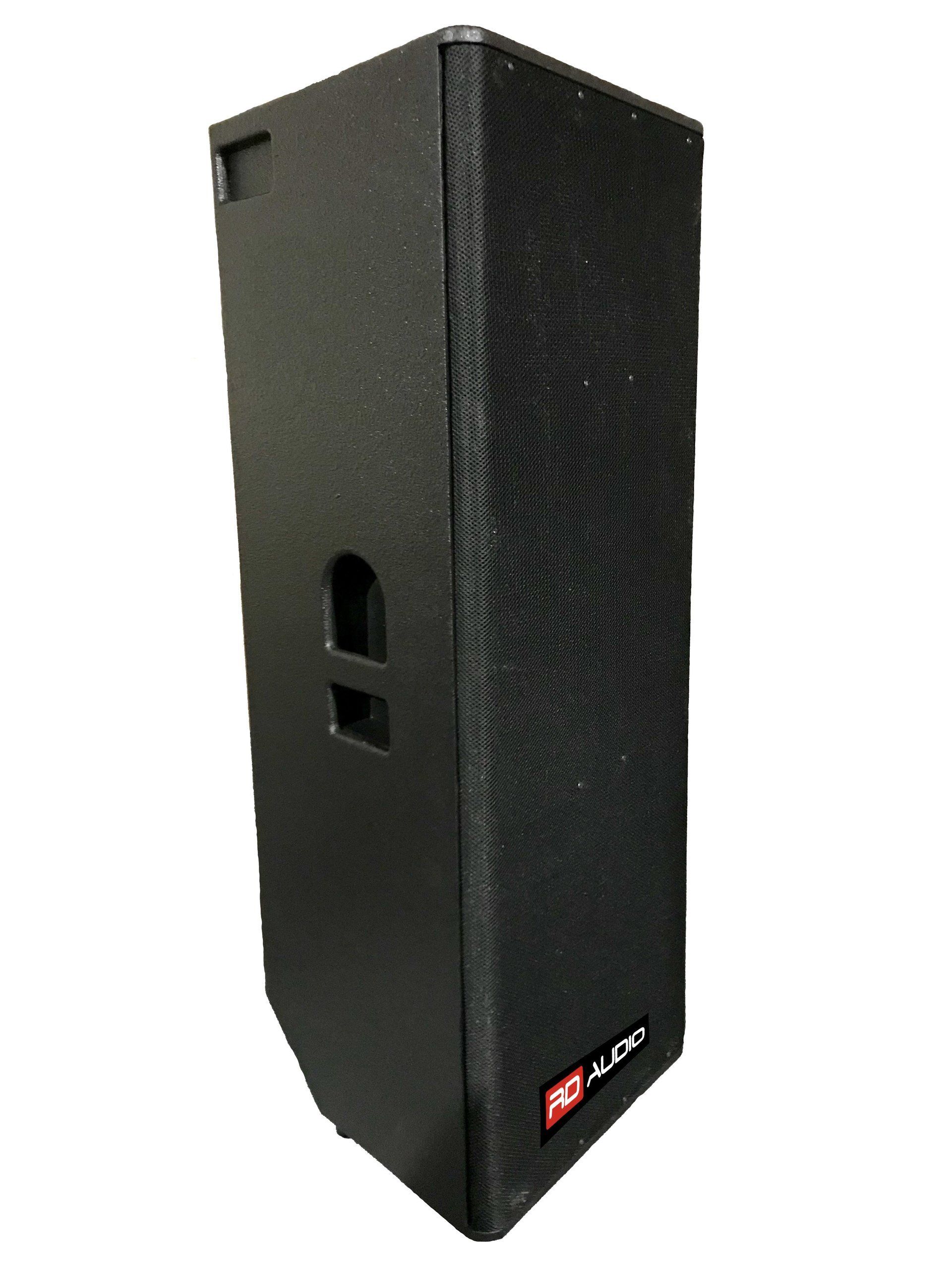Recinto de gran tamaño para PA, trapezoidal pasivo full range, de alto rendimiento, con dos altavoces de 15” y un motor de 1,4”