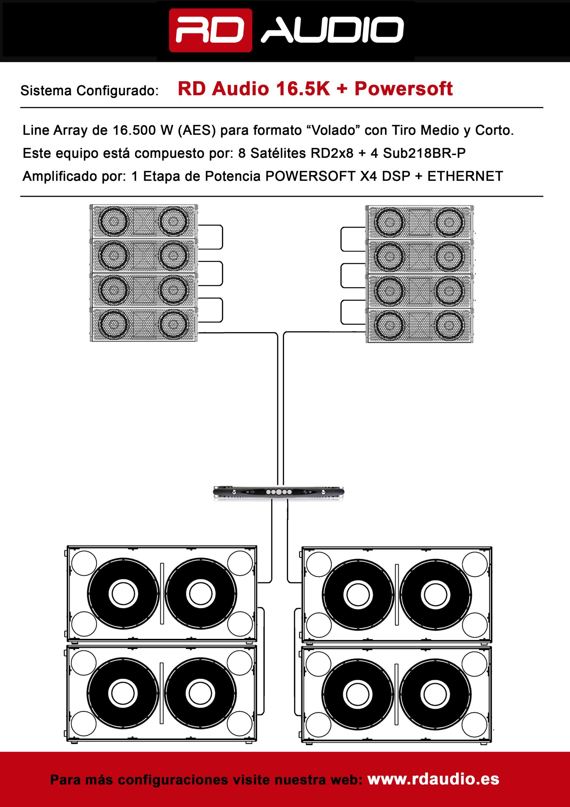 Nuestros equipos en Line Array configurados, incorporan amplificación con nuestras propias etapas de potencia de la Serie RD, con una gran relación Calidad-Precio-Rendimiento.